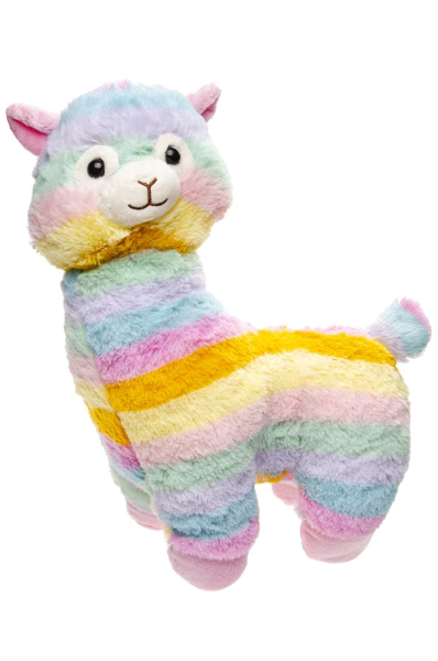Plišasta alpaka v pisanih barvah.